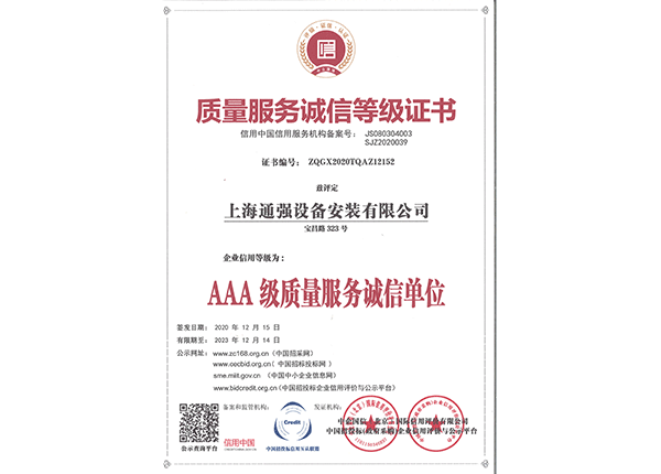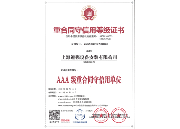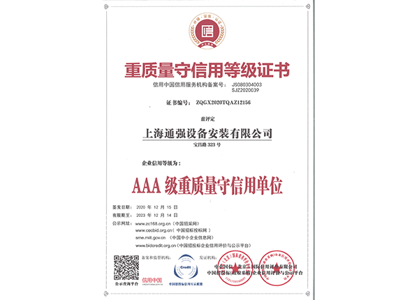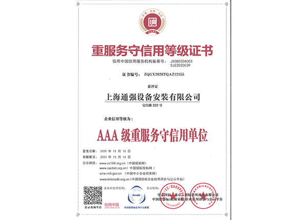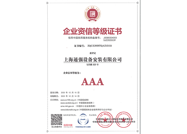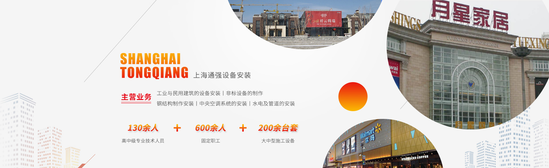 上海通強設備安裝有限公司注冊資金2000萬元,資產總量為100000萬元的專業設備安裝公司,公司專業從事工業與民用建筑的設備安裝、非標設備的制作、鋼結構制作安裝、中央空調系統的安裝,水電及管道的安裝。經過20多年艱苦創(chuàng)業現已成為一個具有國家二級安裝資質,獲得上海市“重合同,守信用”的施工單位。